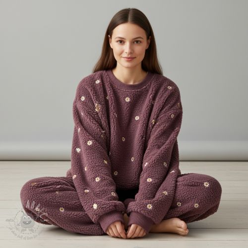 Tkanina płaszczowa TEDDY EMBROIDERY Mini rosewood
