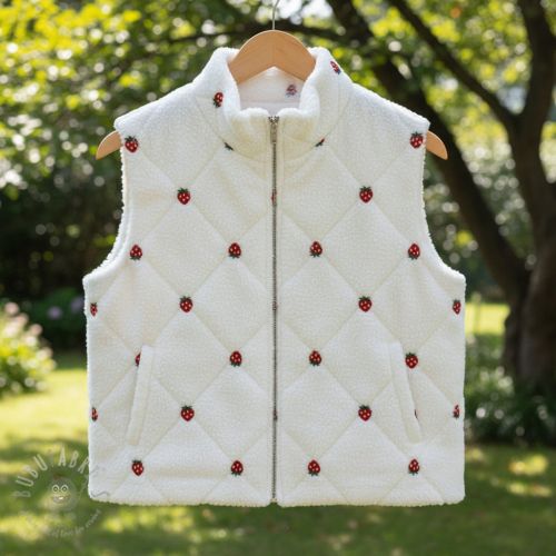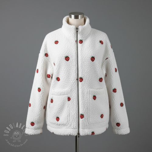 Tkanina płaszczowa TEDDY EMBROIDERY Strawberries white