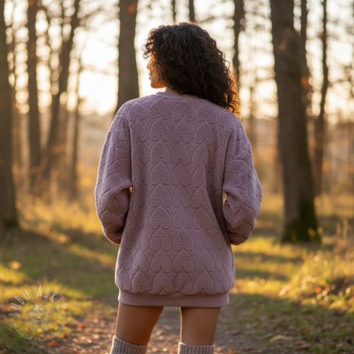 Tkanina płaszczowa TEDDY Hearts in hearts mauve