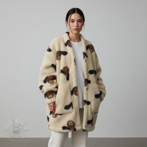 Tkanina płaszczowa TEDDY JACQUARD Dogs brown