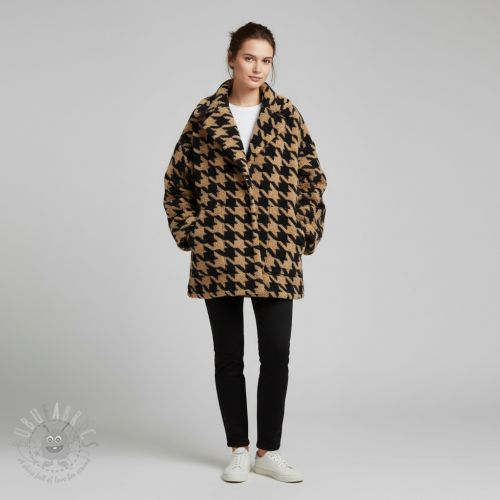 Tkanina płaszczowa TEDDY JACQUARD PIED DE POULE camel