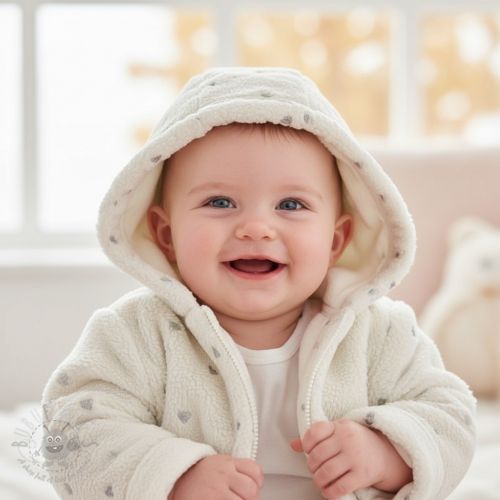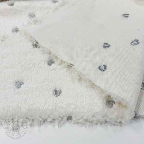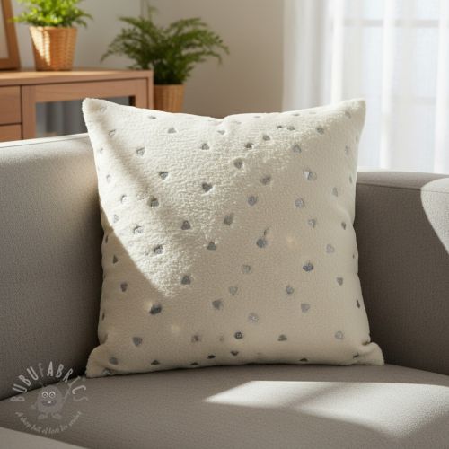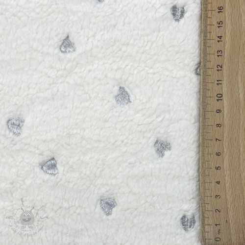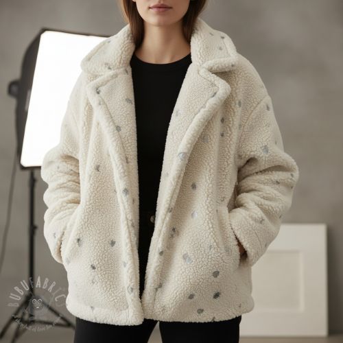 Tkanina płaszczowa TEDDY Tossed hearts silver