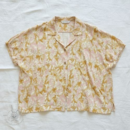 Tkanina wiskozowa z lnem CREPE Flowers yellow digital print