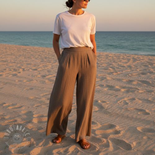 Tkanina wiskozowa z lnem CRINCLE taupe