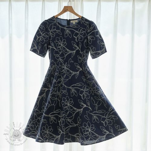 Tkanina wiskozowa z lnem EMBROIDERY Flower Danielle navy