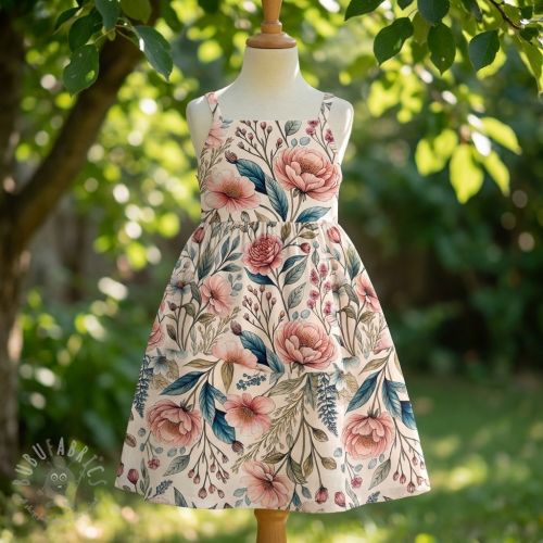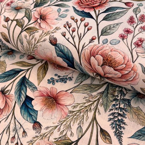 Tkanina wiskozowa z lnem Floral design A