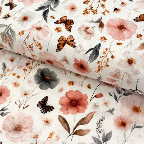 Tkanina wiskozowa z lnem Flower sea design B
