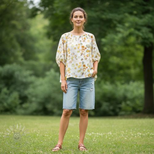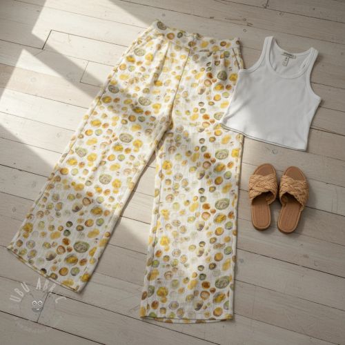 Tkanina wiskozowa z lnem Natural Lin Livy yellow digital print