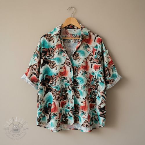 Tkanina wiskozowa z lnem Paint chaos design B digital print