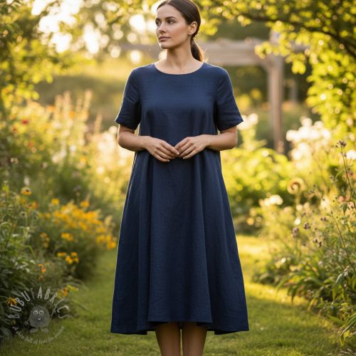 Tkanina wiskozowa z lnem PREMIUM navy blue