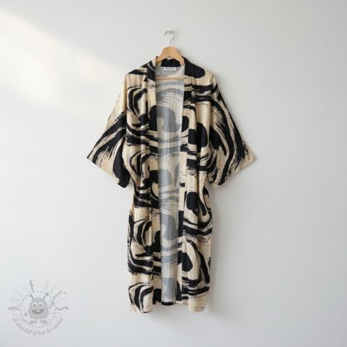 Tkanina wiskozowa z lnem Swirls design B