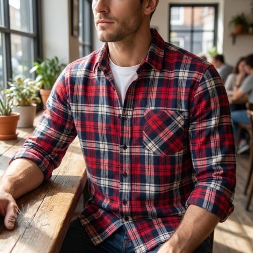 Wiskoza Scottish Check YARN DYED BRUSHED Atlas red